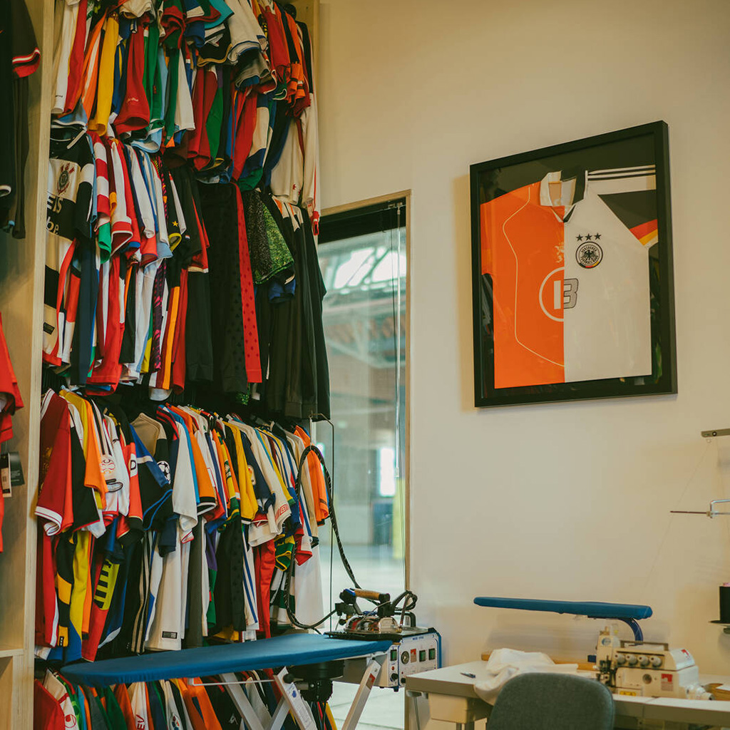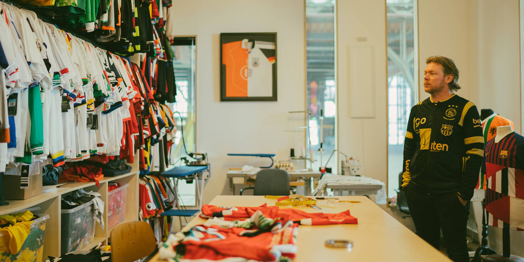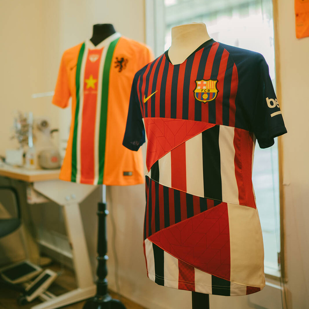 Floor Wesseling designs football shirts to express a visual language in a new form and exhibits his collection of divided shirts internationally. He tells stories by combining different shirts.